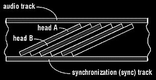 The revolutionary speed of the head drum and the video heads needs to maintain a constancy within strict parameters. Moreover, the tracks must be scanned during playback in precisely the same way as they were recorded. Each tape track is synchronized at the recording stage by means of field synchronization pulses. These pulses are generated in the video recorder by a separate head which are recorded on a separate narrow track at the side of the video tape. This is called the synchronization, servo or control track.