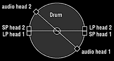 Showing a 4-head drum plus 2 audio heads for hi-fi recordings.