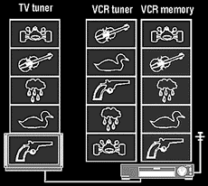 Direct Record (a Philips invention) - provides an internal comparison of the picture (via the SCART cable), similar to Follow TV. The VCR is automatically tuned to the same TV program, and recording begins. The user presses only one button.Programming for Later Recording